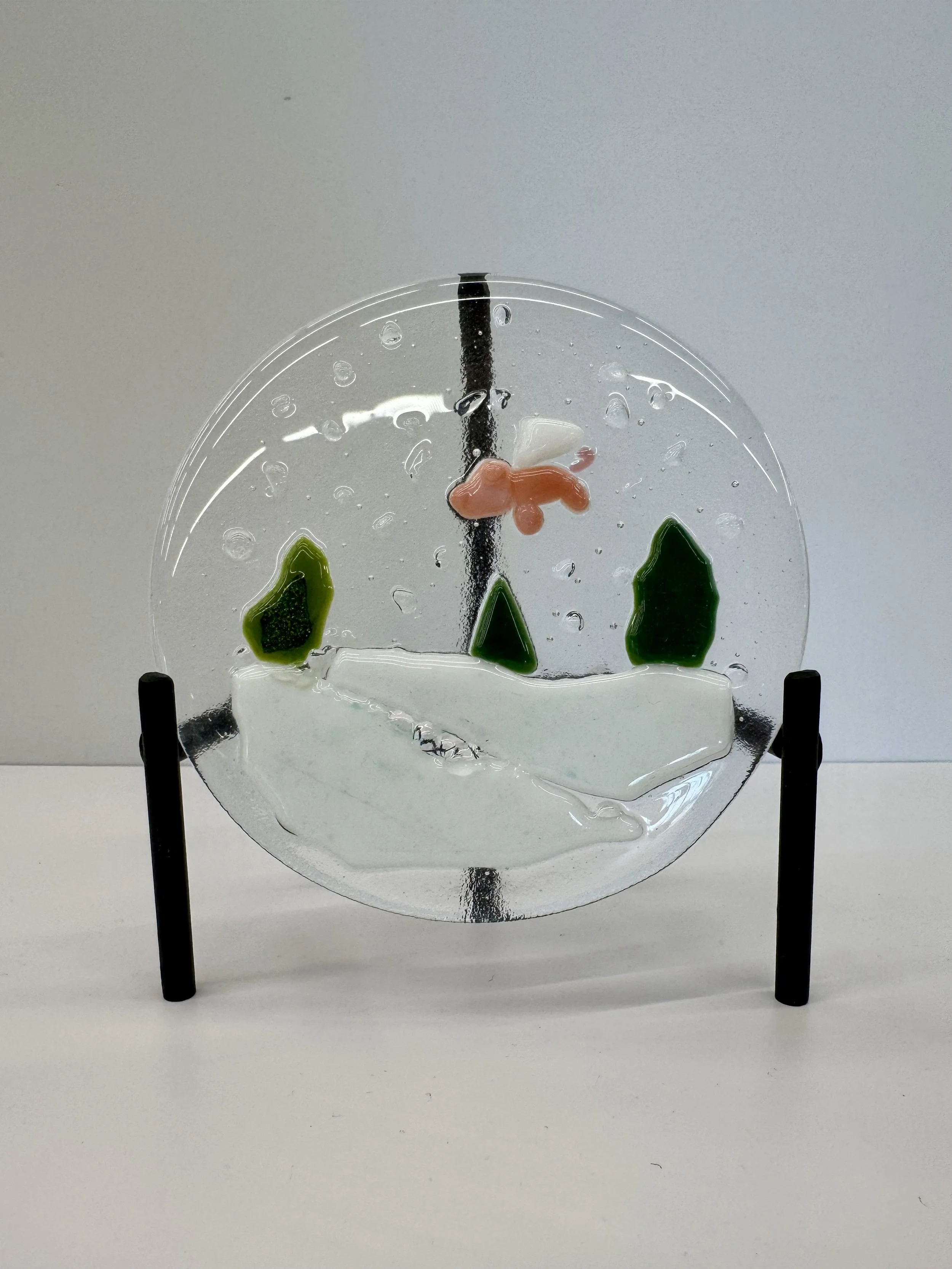 Come be a glass artist! Perfect for all skill levels, this workshop offers hands-on guidance in cutting, layering, and fusing glass. All materials are included—just bring your creativity! Our studio sessions offer a rotating menu of projects to choose from, including seasonal options and favorites like our miniature bookcase.